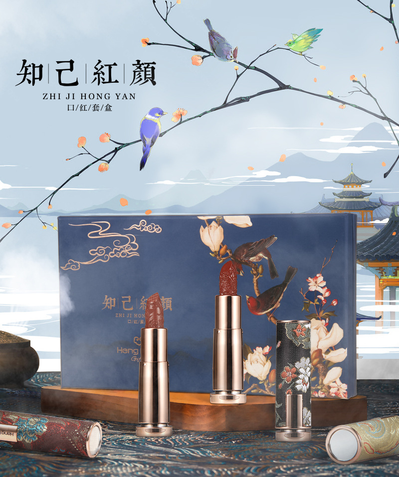 一鹿繁花国潮风雕花口红套装礼盒气垫眼影彩妆套盒七夕情人节礼物