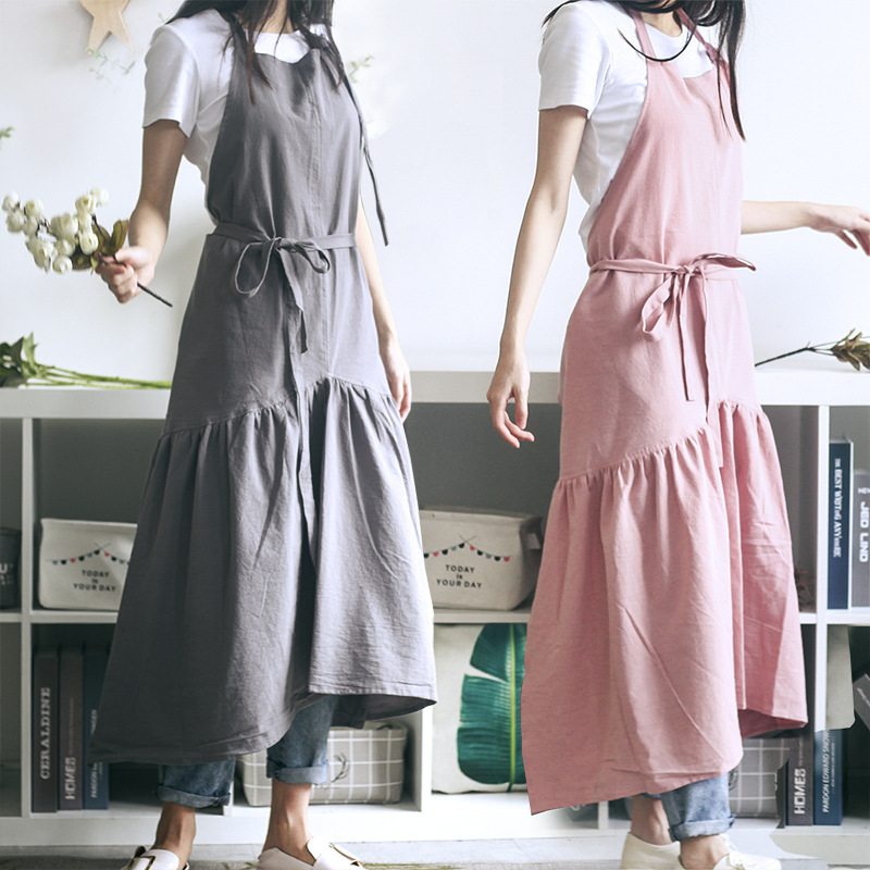日式奶茶店新背带布艺简约棉麻厨房防油咖啡店工作服店服文艺围裙
