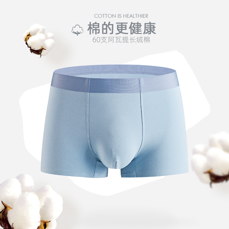 60支长绒棉透气平角裤蚕丝内档抑菌男士内裤无痕纯棉四角裤头