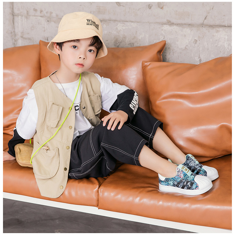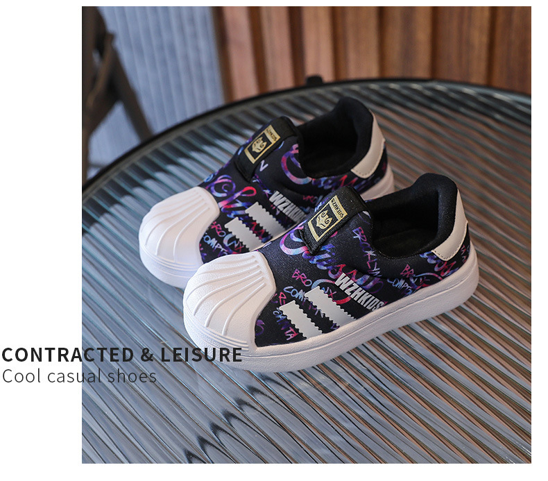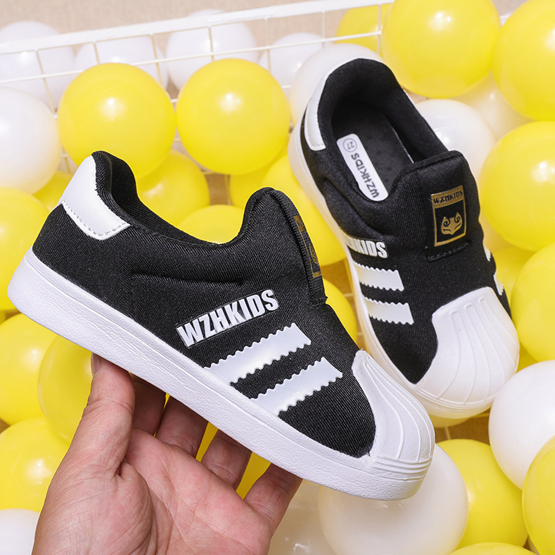 秋冬季新款儿童板鞋网面男童鞋一脚蹬贝壳头童鞋小童女童休闲单鞋