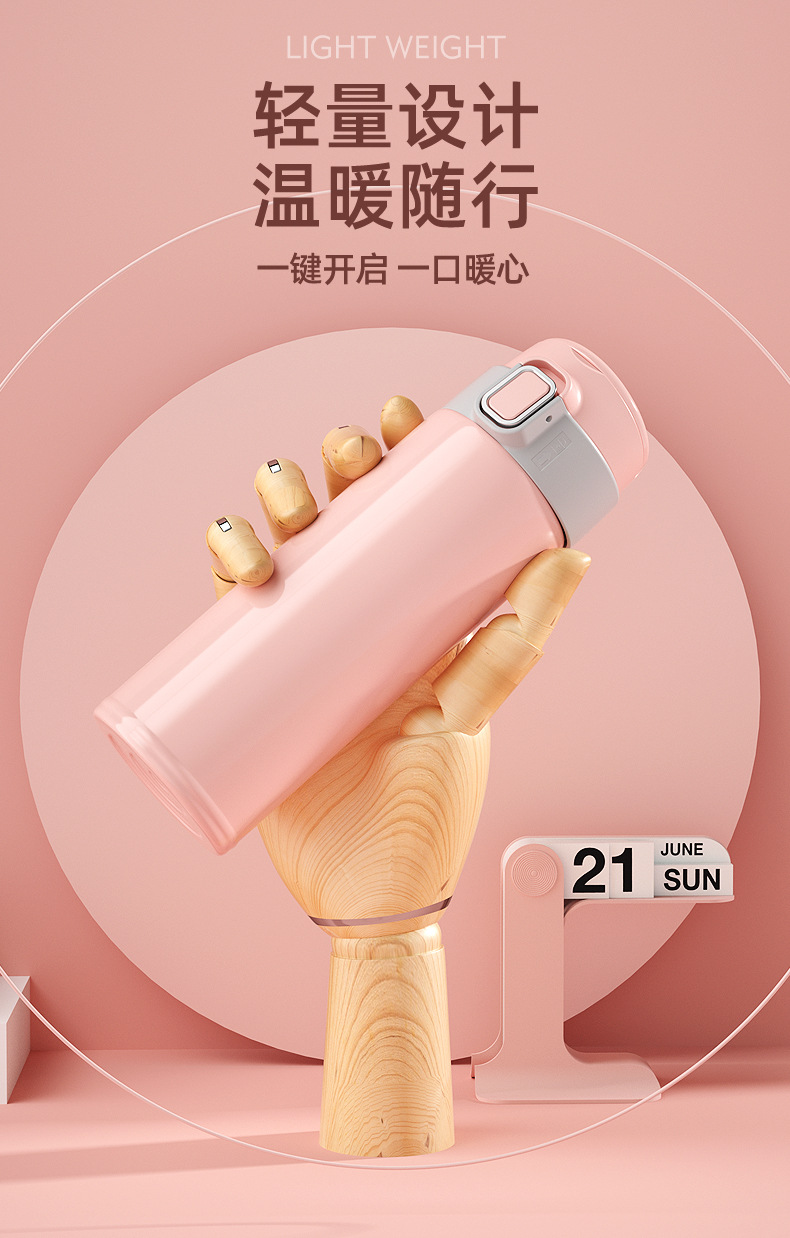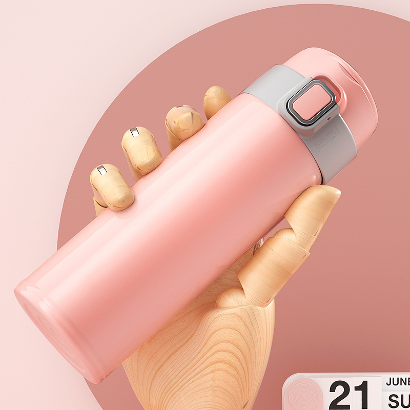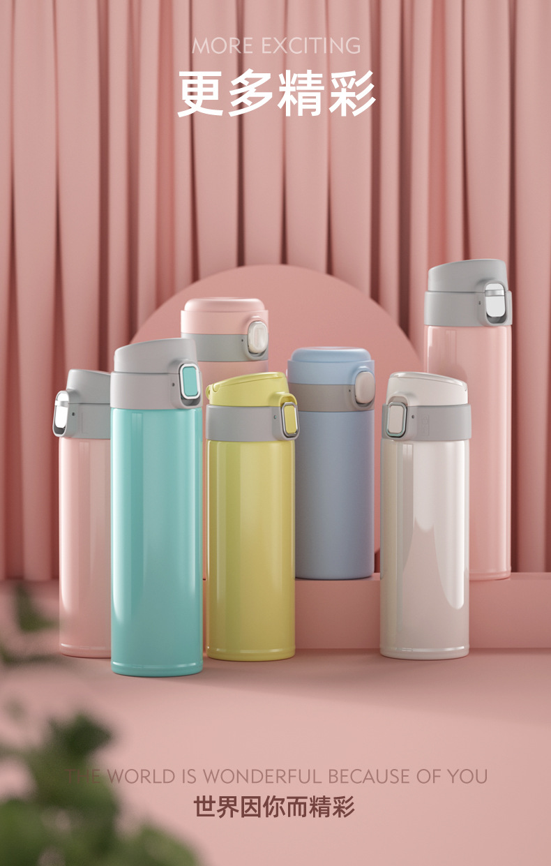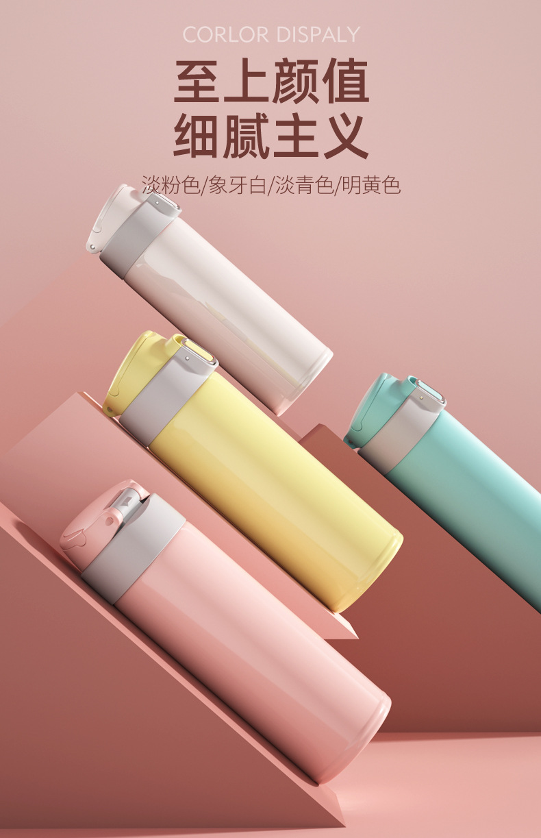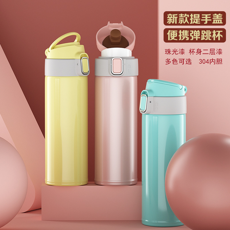 新款提手弹跳保温杯 便携时尚男女不锈钢水杯礼品杯印字logo