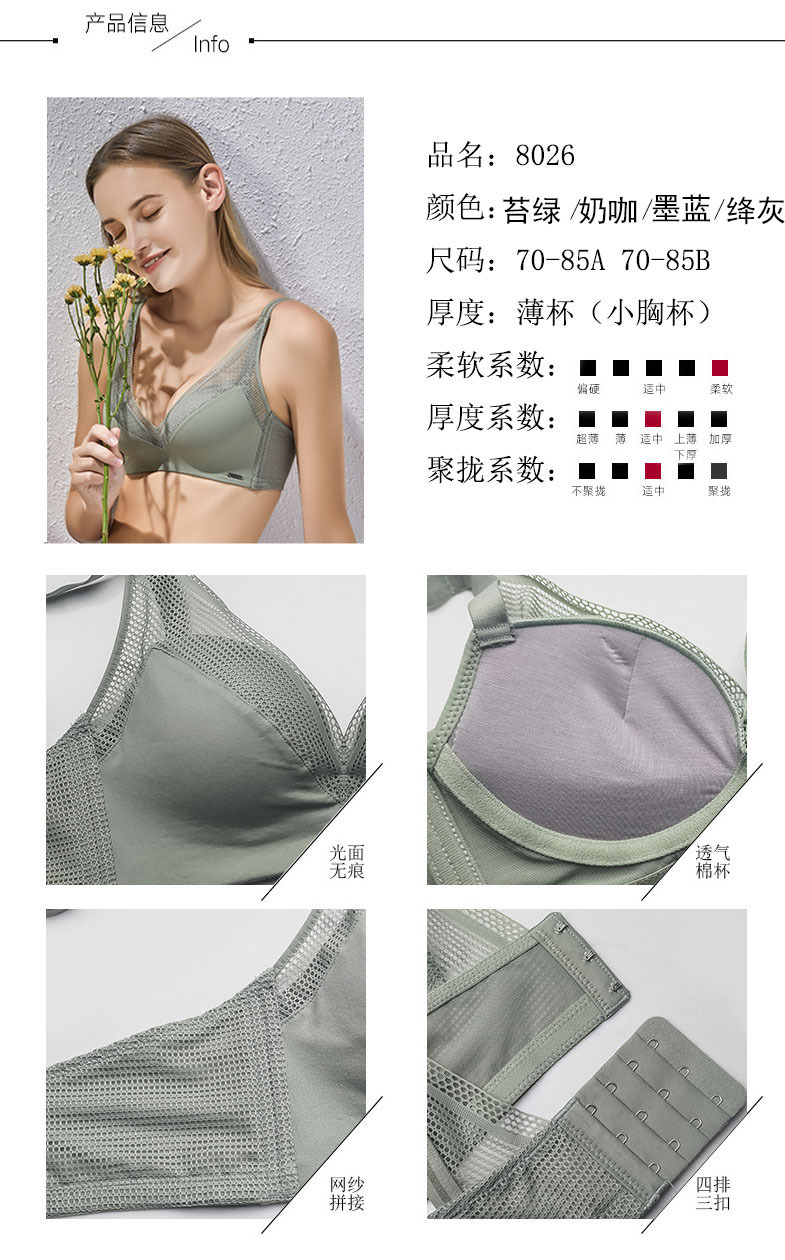 安琪姿简约自然性感舒适文胸无钢圈胸罩小胸聚拢调整型bra内衣女