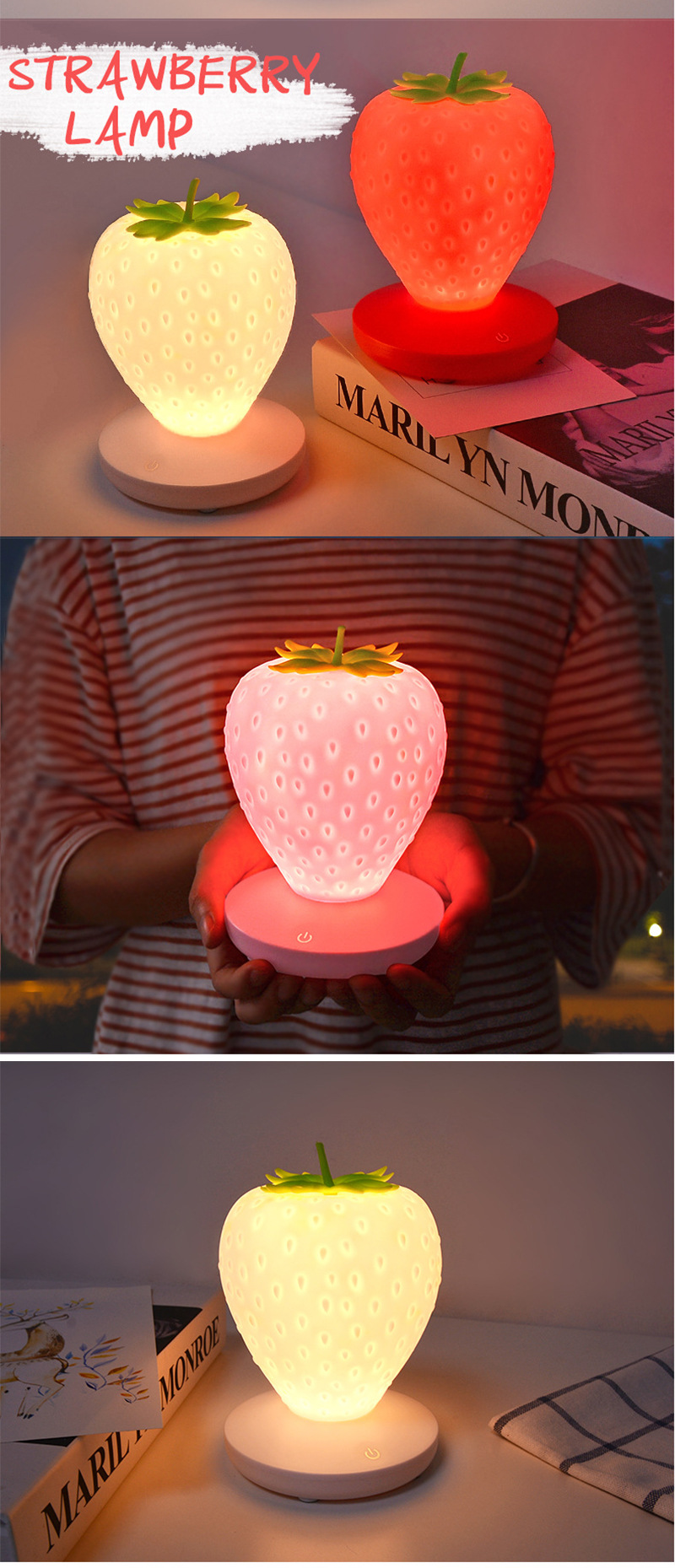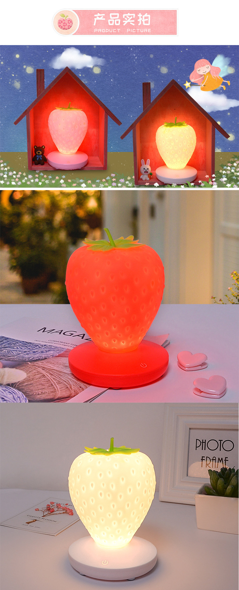 创意草莓硅胶小夜灯LED护眼触摸氛围灯儿童卡通USB充电床头台灯