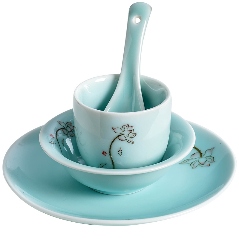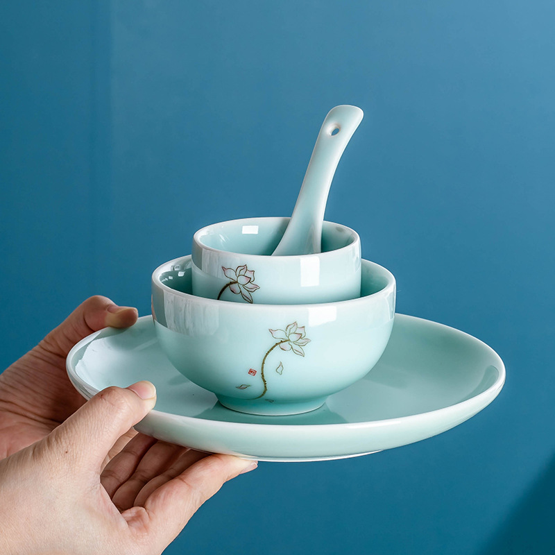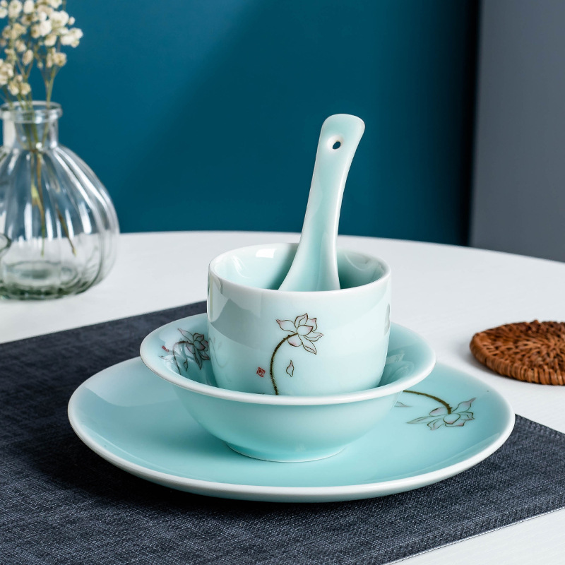 新中式 陶瓷餐具摆台四件套 青瓷 碗碟套装 酒店餐厅荷花包厢台面