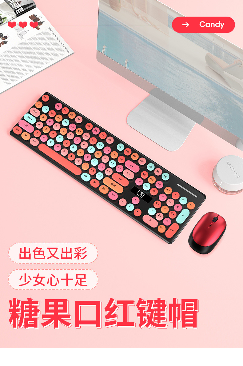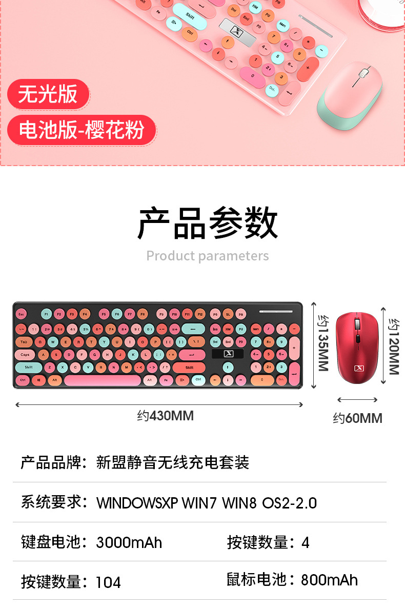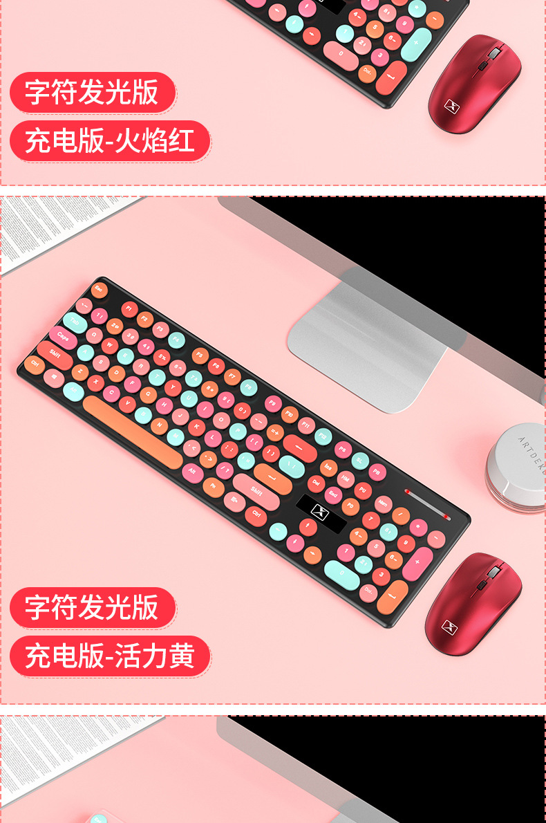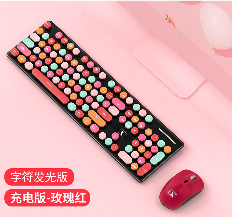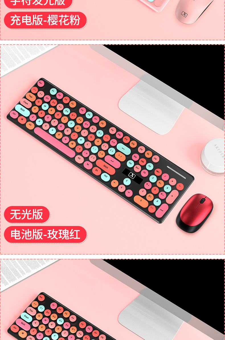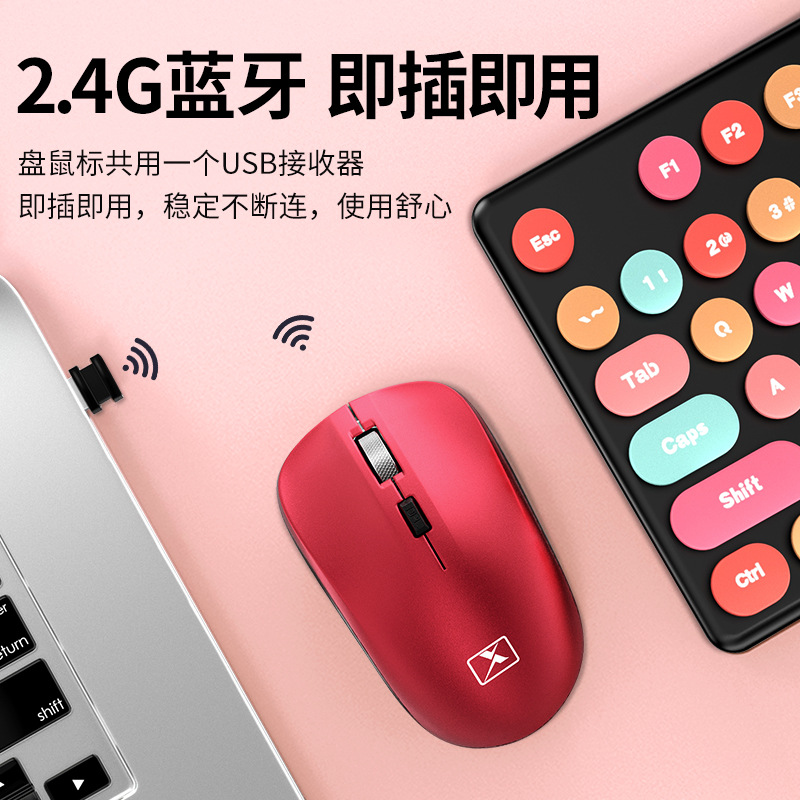 新盟N620无线键盘鼠标套装可充电式口红少女心无声键鼠笔记本办公