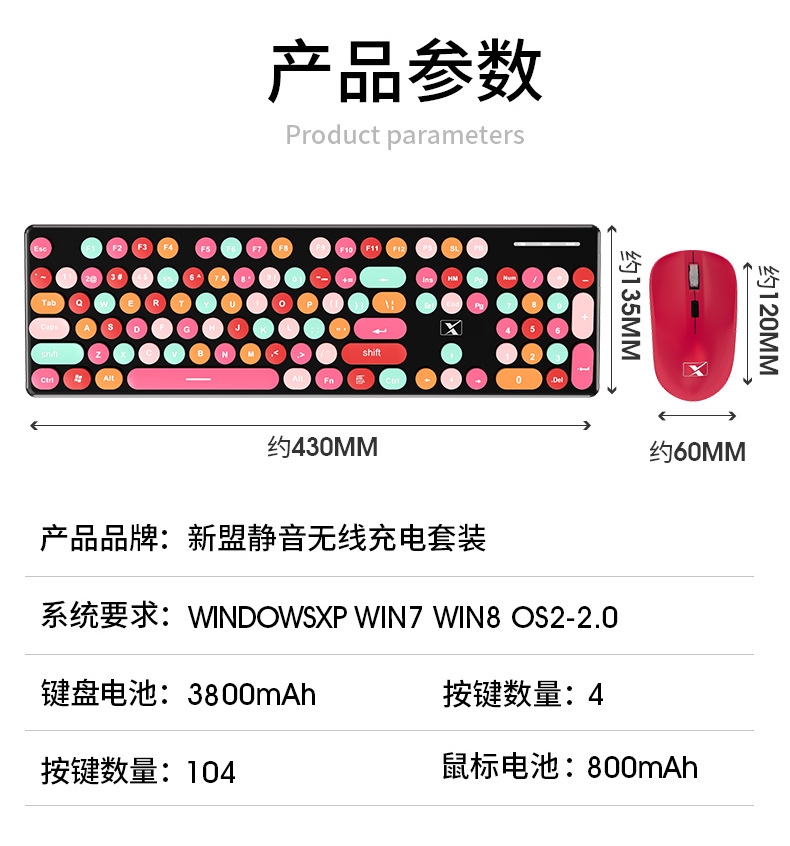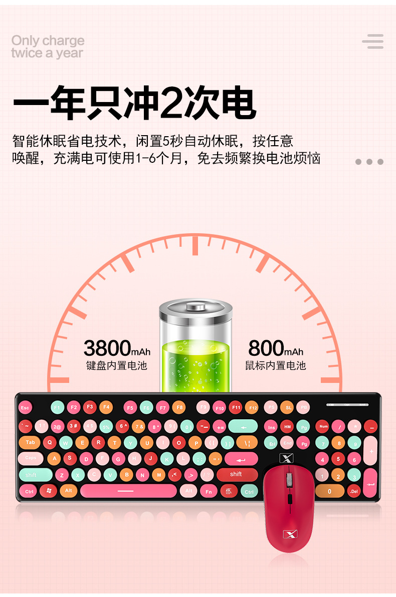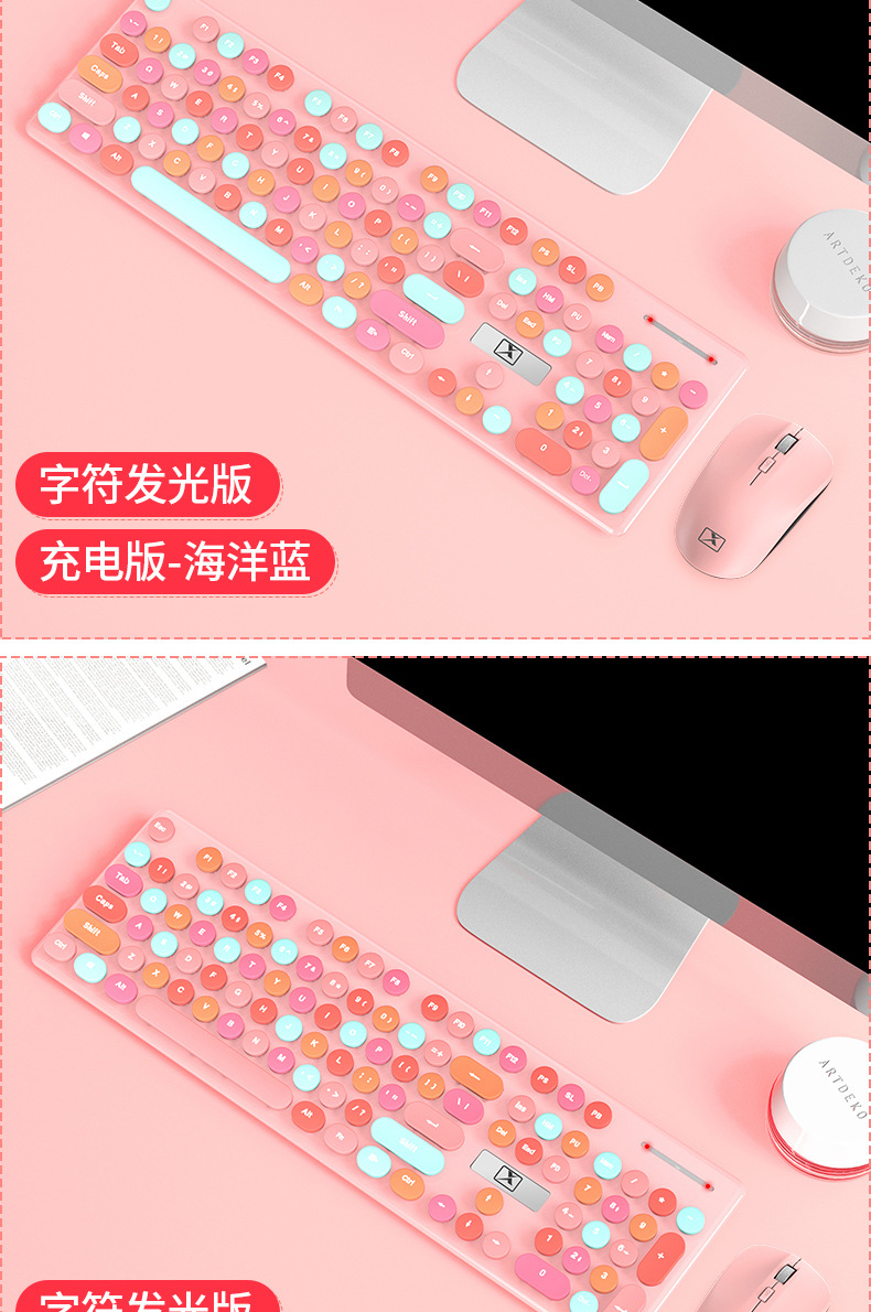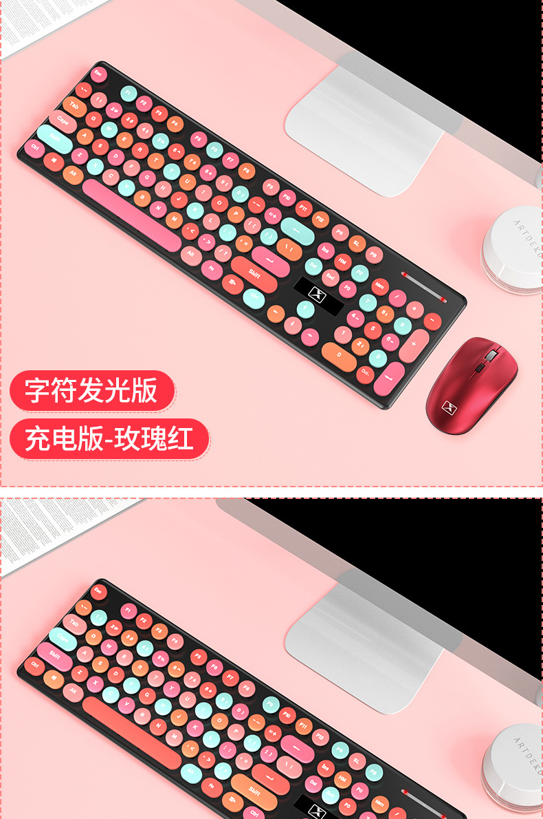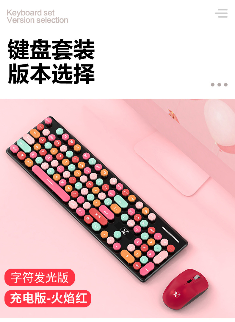 新盟N620无线键盘鼠标套装可充电式口红少女心无声键鼠笔记本办公