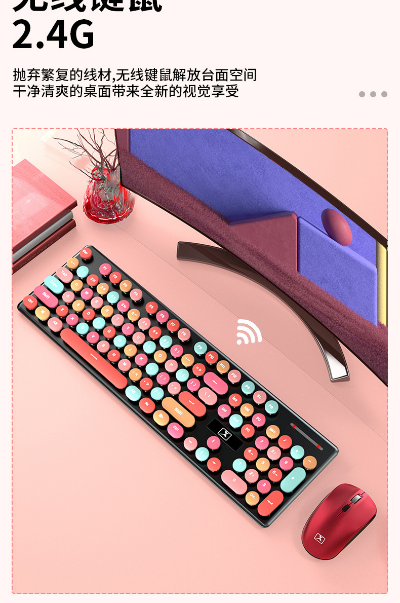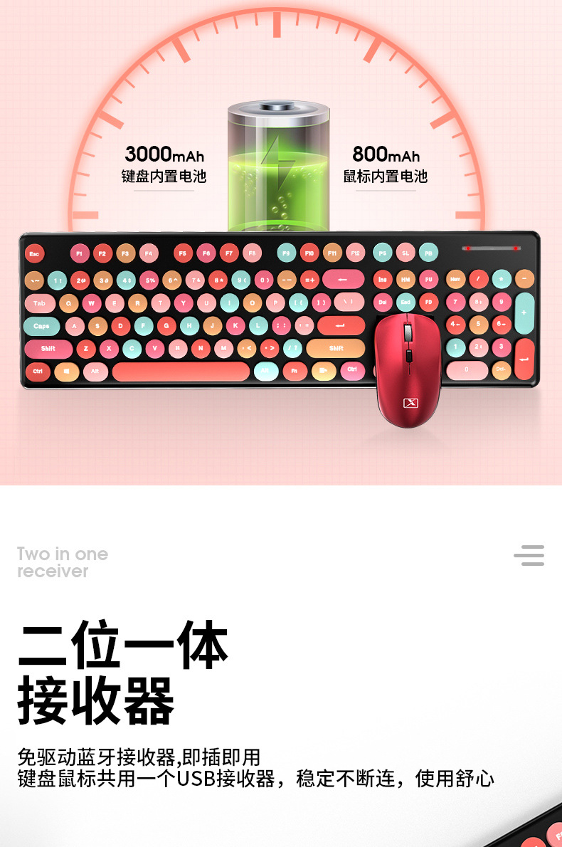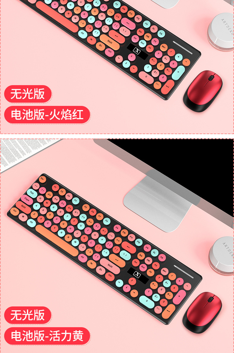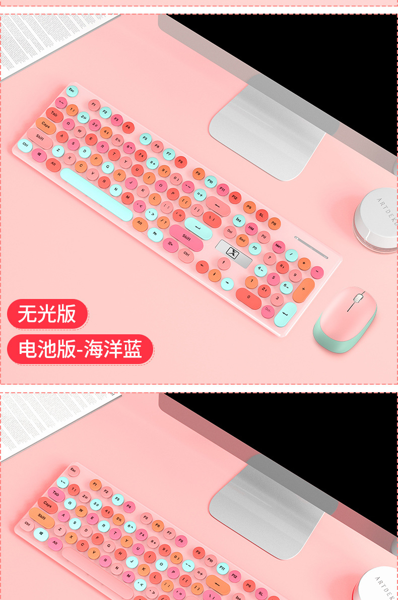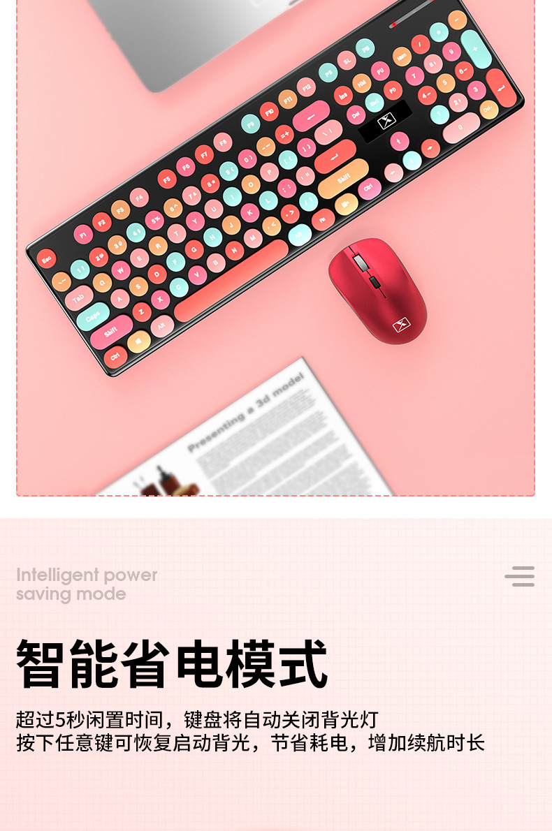 新盟N620无线键盘鼠标套装可充电式口红少女心无声键鼠笔记本办公