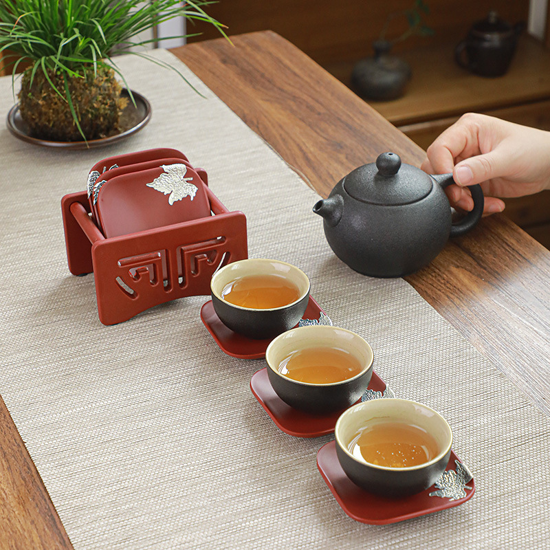 【超级新品】电木杯垫 创意贴锡隔热垫功夫茶具配件茶杯垫套组