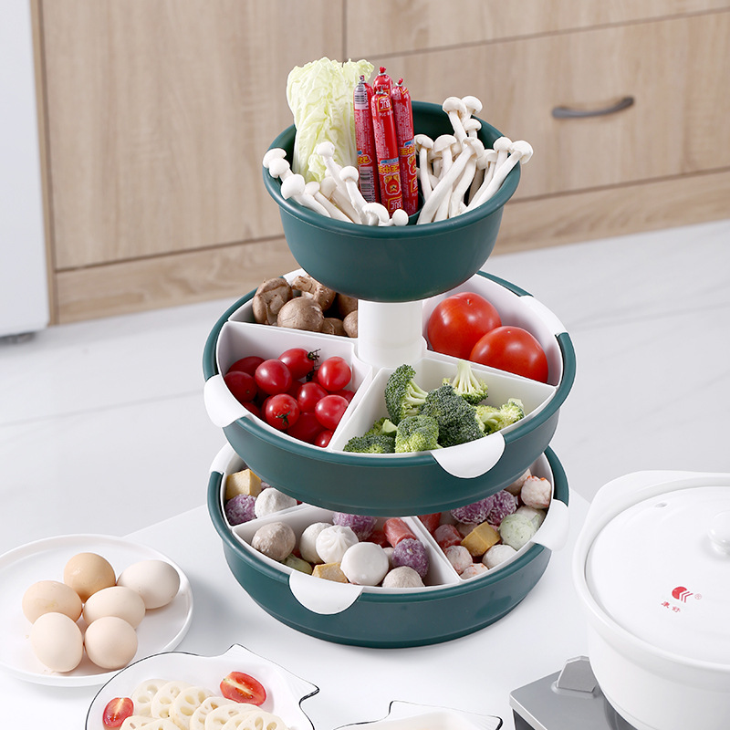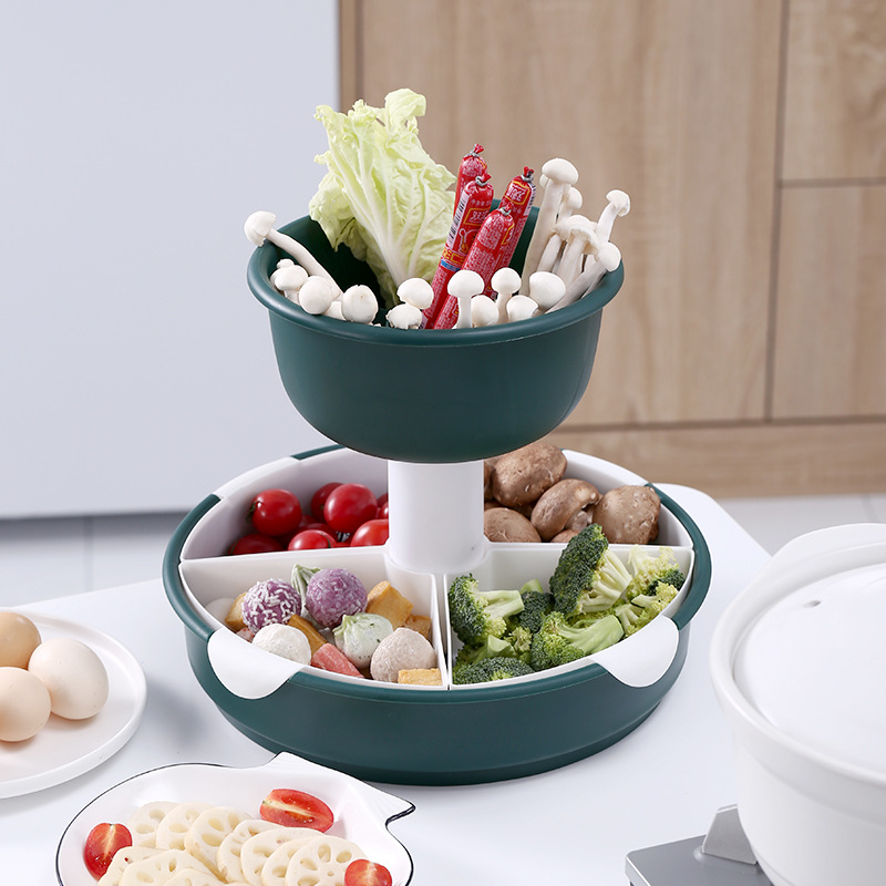 多功能大号双层家用创意新款旋转火锅拼盘塑料三角火锅拼盘沥水篮