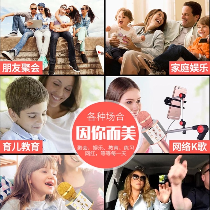 ws858 手机k歌宝卡拉ok无线蓝牙电容麦克风 儿童k歌话筒音响一体