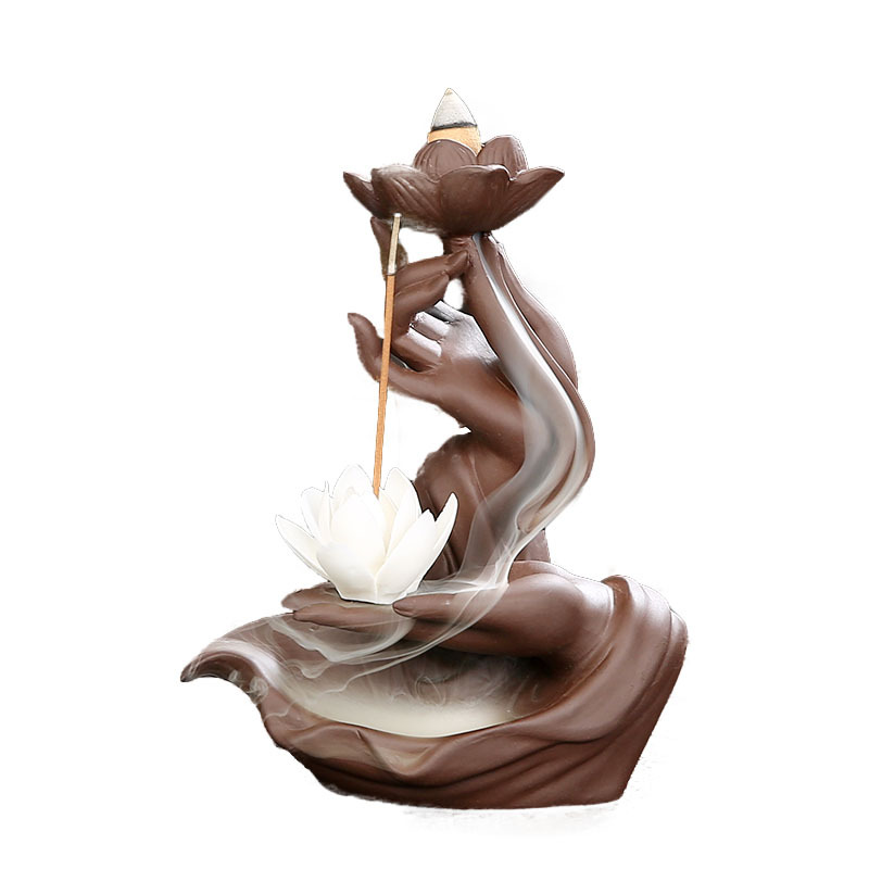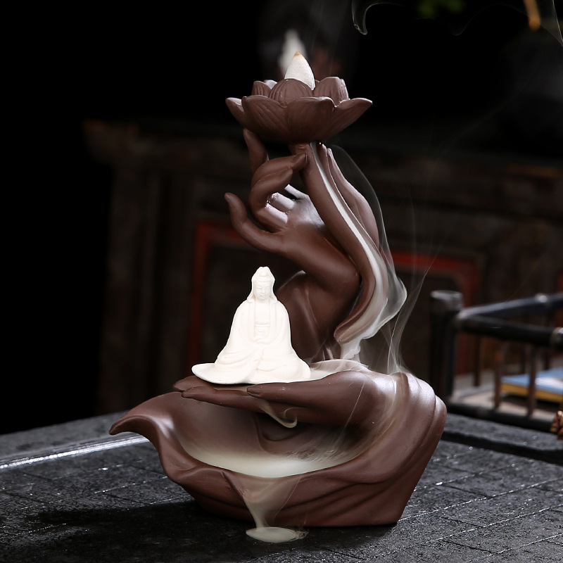 紫砂倒流香炉 佛手莲心家居香道禅意摆件 倒流香香炉