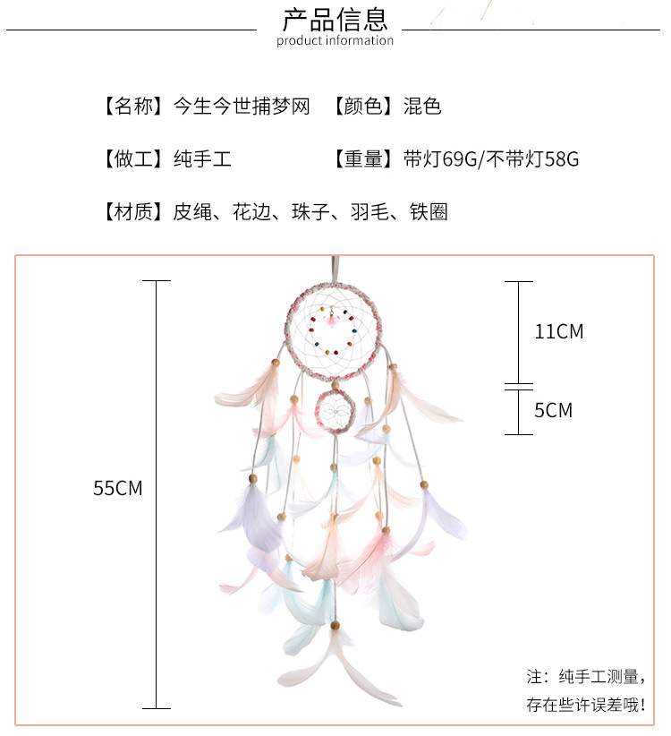 继承者们印第安同款少女心捕梦网编织家居装饰 LED彩灯礼物创意
