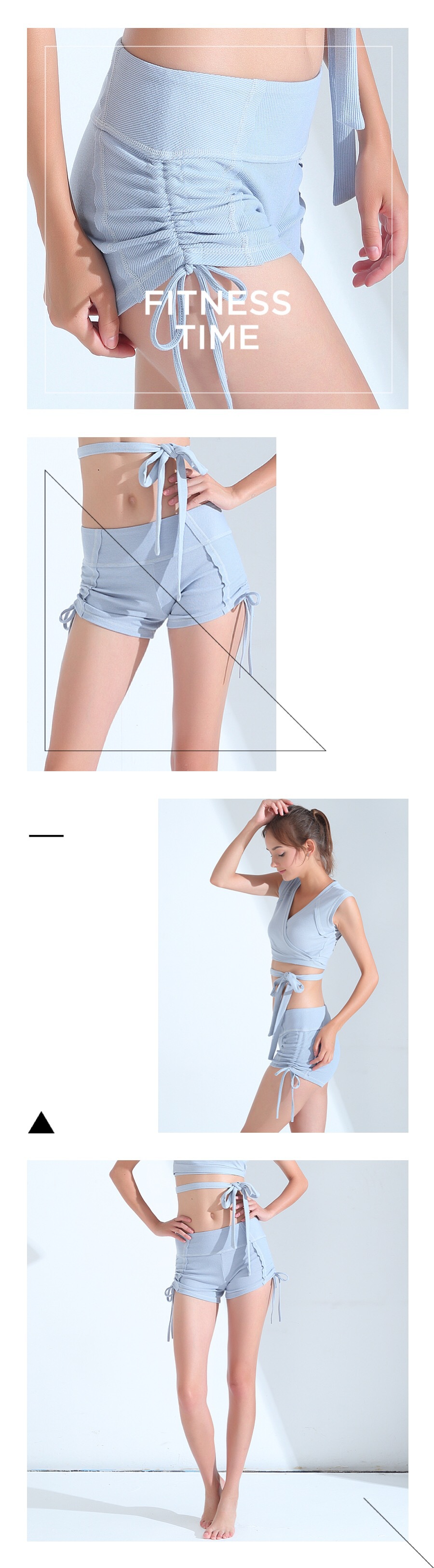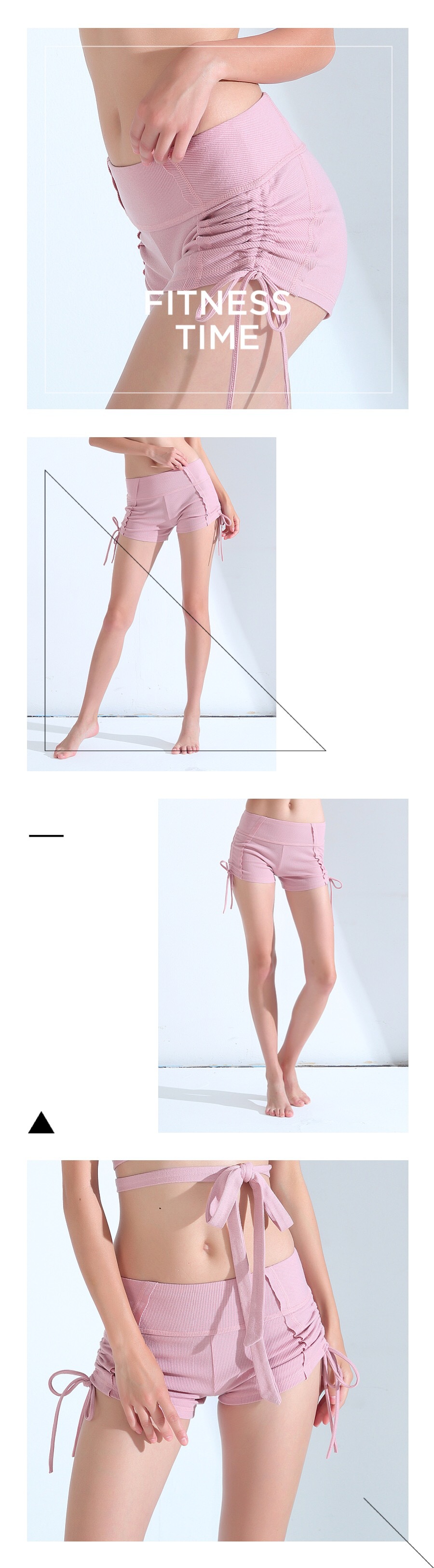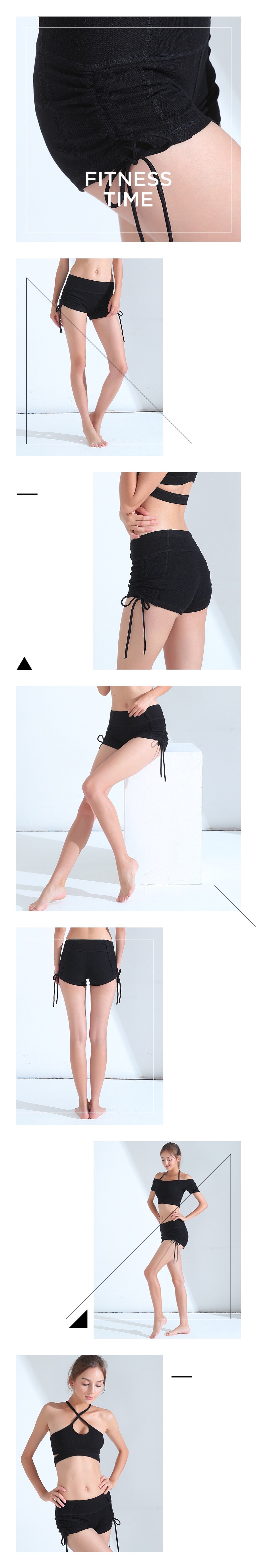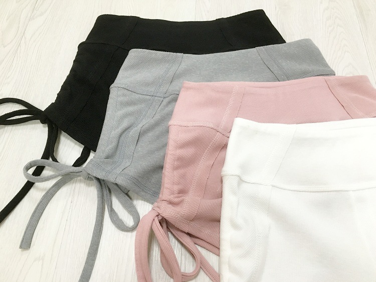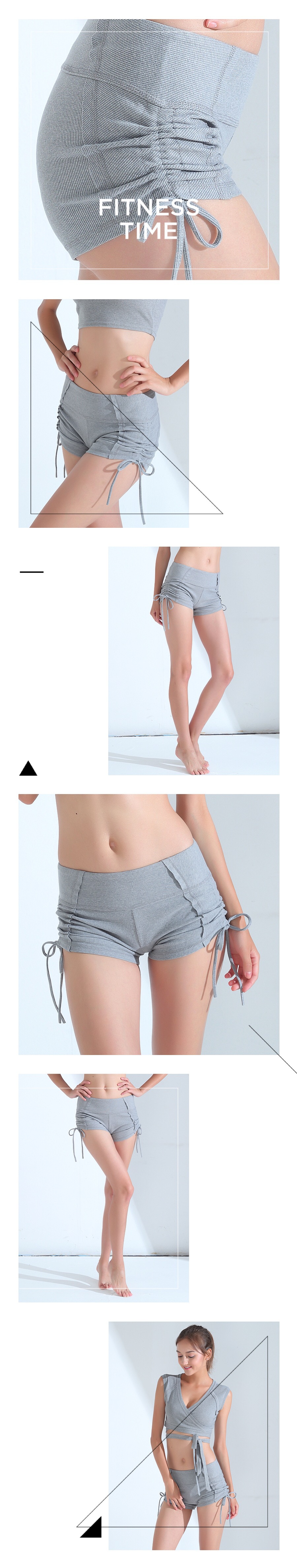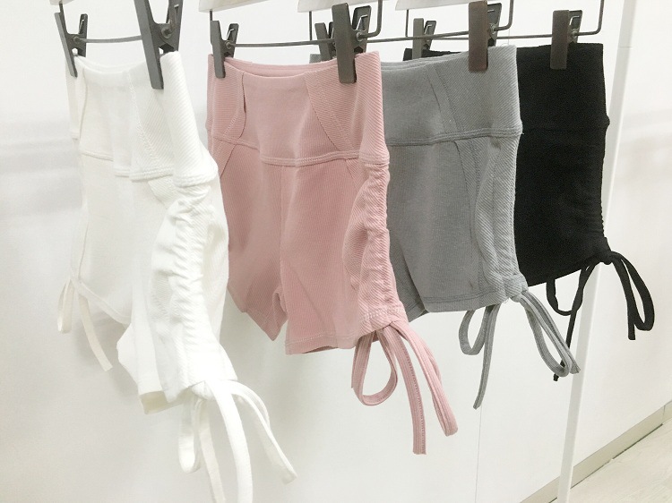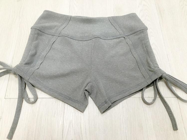 运动系带罗纹布瑜伽裤短裤女显瘦休闲裤女跑步瑜伽健身热裤女